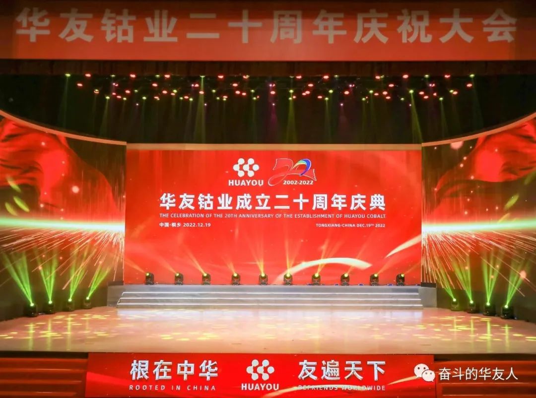 On December 19, 2022, the Celebration of the 20th Anniversary of Huayou Cobalt was grandly held in Tongxiang City. Representatives of our customers and suppliers, as well as our friends from relevant financial institutions, securities institutions and media institutions, met in Tongxiang City to celebrate the 20th anniversary, recall the years of coexistence, share feelings of growth, and appreciate their company along the way.