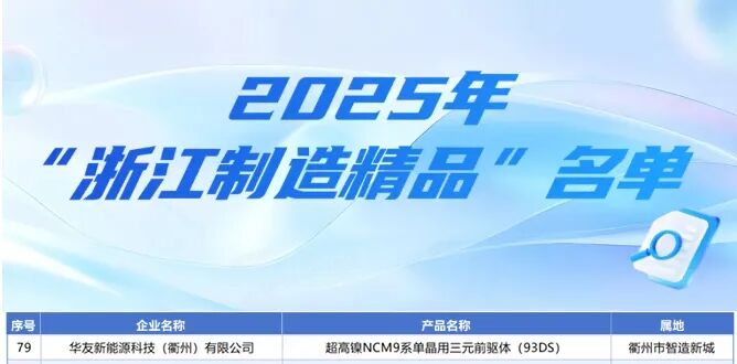 ·ÜÕ½100ÌìϵÁÐÖ®ÊÖÒÕÁ¢Òì | ½ðɳjs93252³¬¸ßÄøNCM9ϵµ¥¾§ÓÃÈýԪǰÇýÌåÈÙµÇ2025Äê¶È"Õã½ÖÆÔ쾫Ʒ"°ñµ¥